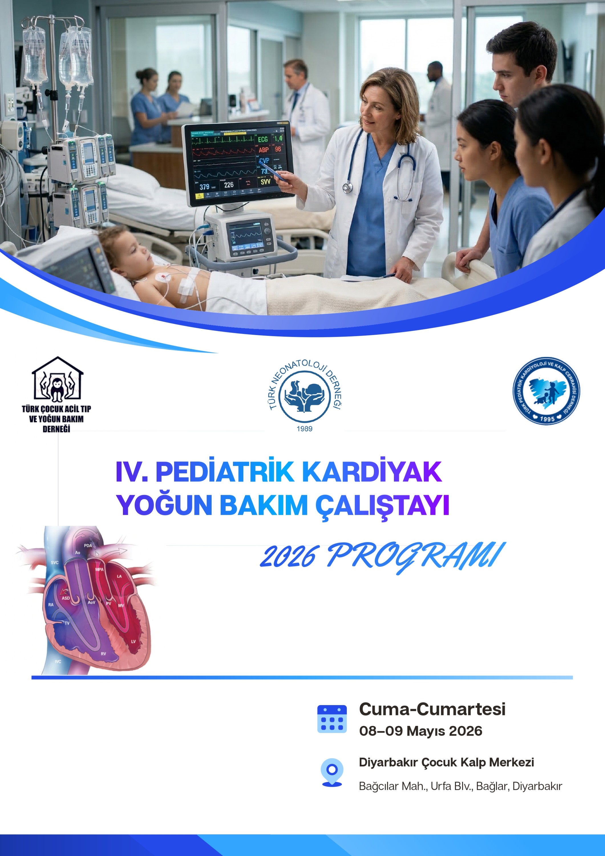 08-09 Mayıs 2026 , IV. Pediatrik Kardiyak Yoğun Bakım Çalıştayı, Diyarbakır Çocuk Kalp Merkezinde yapılacaktır