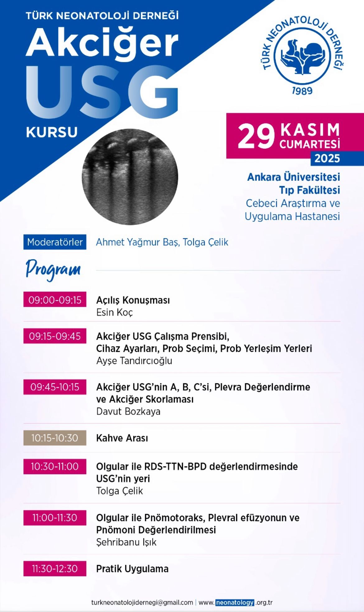 Türk Neonatoloji Derneği Akciğer Ultrason Kursu, 29 Kasım 2025’te Ankara Üniversitesi ev sahipliğinde başarıyla gerçekleştirildi.