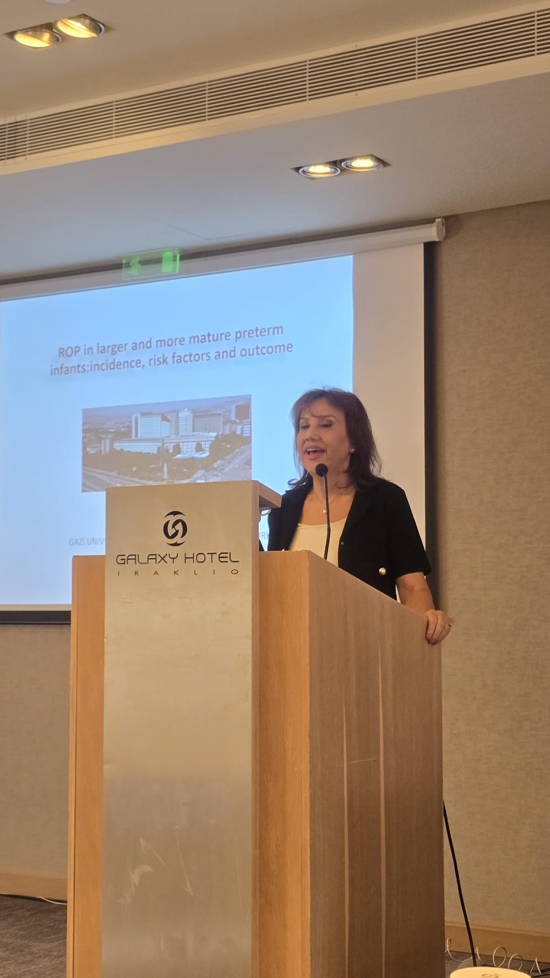 Prof. Dr. Esin Koç, “ROP Guidelines: Universal Approach or Case-by-Case Approach” başlıklı konuşmasında prematüre retinopatisi (ROP) kılavuzlarının uygulanmasında evrensel yaklaşımlar ile olguya özgü stratejiler arasındaki farkları değerlendirdi ve ülke deneyimimizi uluslararası meslektaşlarıyla paylaştı.